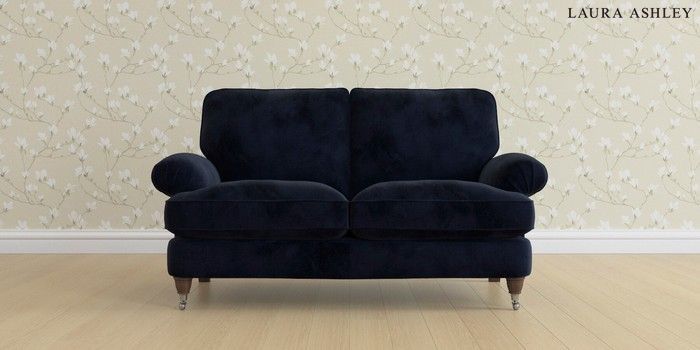 6.12.1 Buy Beaumaris by Laura Ashley 2 Seater Sofa Orla Midnight Navy Low Chrome Castor - Chestnut from the Laura Ashley online shop Click here to use our website with more accessibility support, for example screen readers