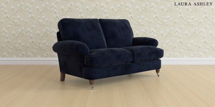 6.12.13 Buy Beaumaris by Laura Ashley 2 Seater Sofa Orla Midnight Navy Low Chrome Castor - Chestnut from the Laura Ashley online shop Click here to use our website with more accessibility support, for example screen readers