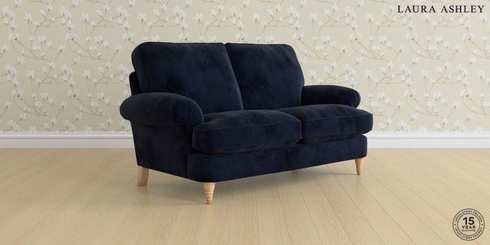 6.12.1 Buy Beaumaris by Laura Ashley 2 Seater Sofa Orla Midnight Navy Low Turned - Light Oak from the Laura Ashley online shop Click here to use our website with more accessibility support, for example screen readers