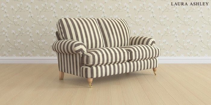 6.12.1 Buy Beaumaris by Laura Ashley 2 Seater Sofa Orla Stripe Dark Truffle Natural Low Brass Castor - Light Oak from the Laura Ashley online shop Click here to use our website with more accessibility support, for example screen readers