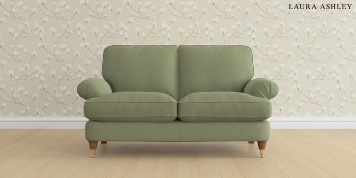 6.12.1 Buy Beaumaris by Laura Ashley 2 Seater Sofa Peyton Hedgerow Green Low Brass Castor - Teak from the Laura Ashley online shop Click here to use our website with more accessibility support, for example screen readers