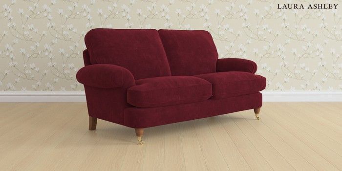 6.12.1 Buy Beaumaris by Laura Ashley 3 Seater Small Sofa Alwyn Velvet Burgundy Red Low Brass Castor - Teak from the Laura Ashley online shop Click here to use our website with more accessibility support, for example screen readers