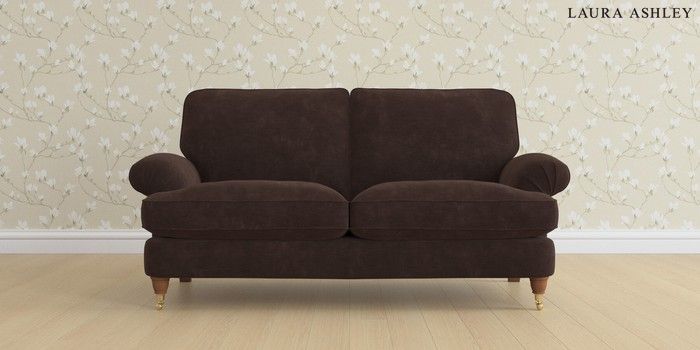 6.12.13 Buy Beaumaris by Laura Ashley 3 Seater Small Sofa Alwyn Velvet Chocolate Brown Low Brass Castor - Teak from the Laura Ashley online shop Click here to use our website with more accessibility support, for example screen readers