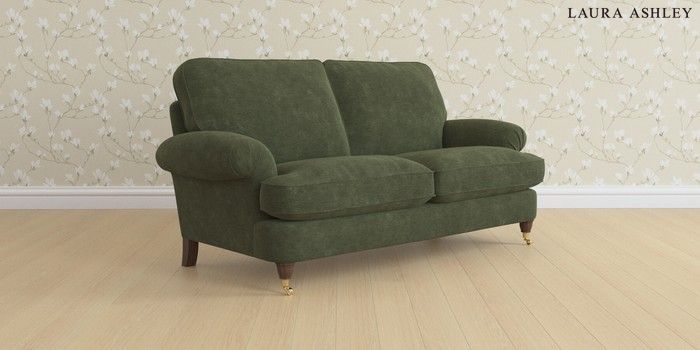 6.12.1 Buy Beaumaris by Laura Ashley 3 Seater Small Sofa Alwyn Velvet Ivy Green Low Brass Castor - Chestnut from the Laura Ashley online shop Click here to use our website with more accessibility support, for example screen readers