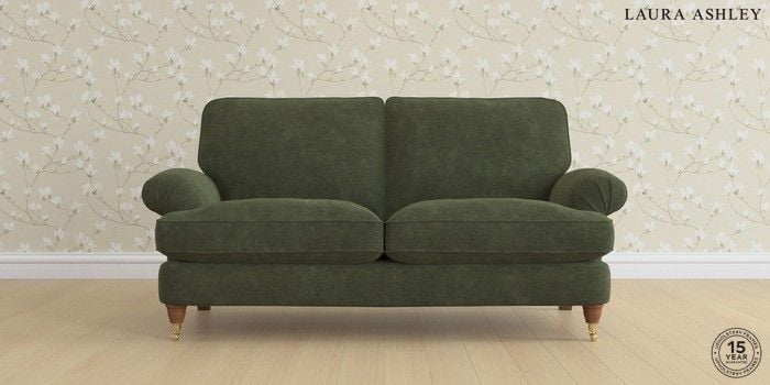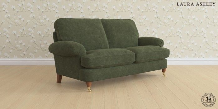6.12.1 Buy Beaumaris by Laura Ashley 3 Seater Small Sofa Alwyn Velvet Ivy Green Low Brass Castor - Teak from the Laura Ashley online shop Click here to use our website with more accessibility support, for example screen readers