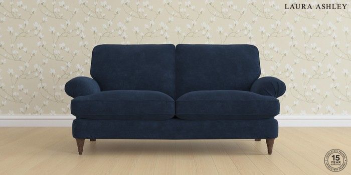 6.12.1 Buy Beaumaris by Laura Ashley 3 Seater Small Sofa Alwyn Velvet Midnight Navy Low Turned - Chestnut from the Laura Ashley online shop Click here to use our website with more accessibility support, for example screen readers