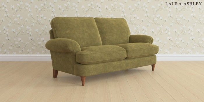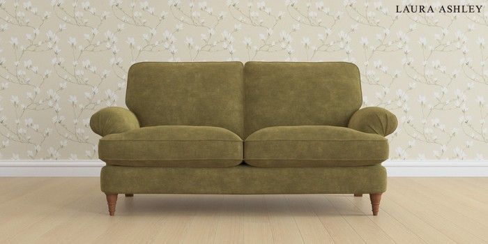 6.12.1 Buy Beaumaris by Laura Ashley 3 Seater Small Sofa Alwyn Velvet Olive Green Low Turned - Teak from the Laura Ashley online shop Click here to use our website with more accessibility support, for example screen readers