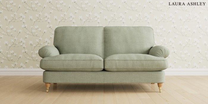 6.12.1 Buy Beaumaris by Laura Ashley 3 Seater Small Sofa Anneliese Sage Green Low Brass Castor - Light Oak from the Laura Ashley online shop Click here to use our website with more accessibility support, for example screen readers
