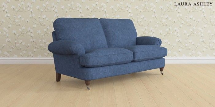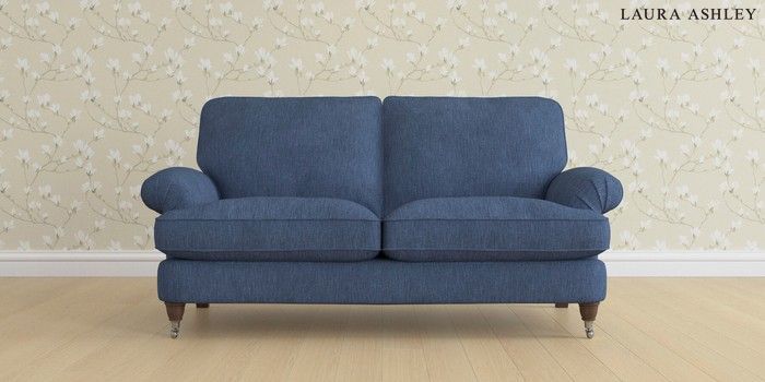 6.12.13 Buy Beaumaris by Laura Ashley 3 Seater Small Sofa Bainton Midnight Navy Low Chrome Castor - Chestnut from the Laura Ashley online shop Click here to use our website with more accessibility support, for example screen readers