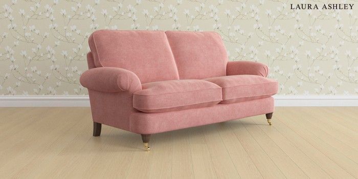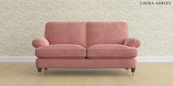 6.12.1 Buy Beaumaris by Laura Ashley 3 Seater Small Sofa Bainton Old Rose Pink Low Brass Castor - Chestnut from the Laura Ashley online shop Click here to use our website with more accessibility support, for example screen readers