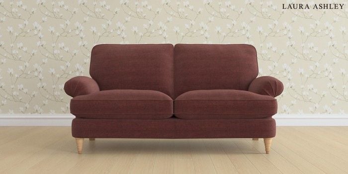 6.12.1 Buy Beaumaris by Laura Ashley 3 Seater Small Sofa Edwin Chenille Burgundy Red Low Turned - Light Oak from the Laura Ashley online shop Click here to use our website with more accessibility support, for example screen readers