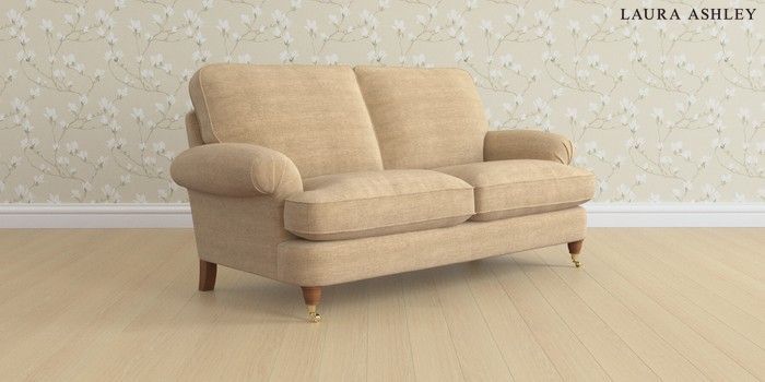 6.12.1 Buy Beaumaris by Laura Ashley 3 Seater Small Sofa Edwin Chenille Gold Natural Low Brass Castor - Teak from the Laura Ashley online shop Click here to use our website with more accessibility support, for example screen readers