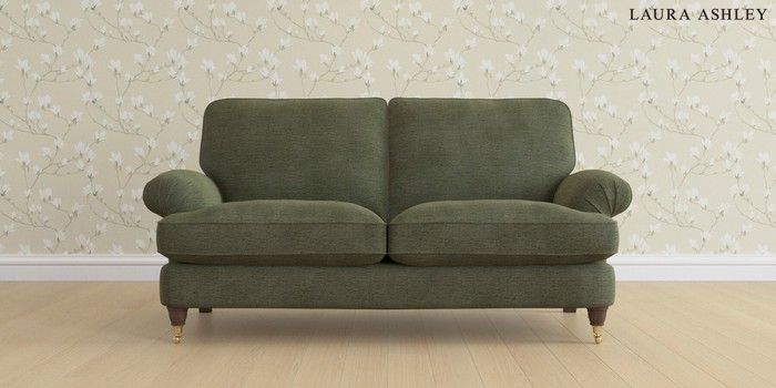 6.12.13 Buy Beaumaris by Laura Ashley 3 Seater Small Sofa Edwin Chenille Hedgerow Green Low Brass Castor - Chestnut from the Laura Ashley online shop Click here to use our website with more accessibility support, for example screen readers