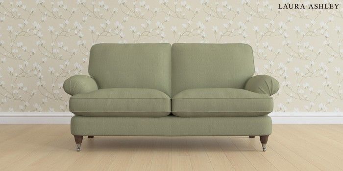 6.12.1 Buy Beaumaris by Laura Ashley 3 Seater Small Sofa Edwin Herringbone Hedgerow Green Low Chrome Castor - Chestnut from the Laura Ashley online shop Click here to use our website with more accessibility support, for example screen readers