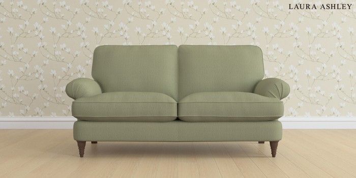 6.12.1 Buy Beaumaris by Laura Ashley 3 Seater Small Sofa Edwin Herringbone Hedgerow Green Low Turned - Chestnut from the Laura Ashley online shop Click here to use our website with more accessibility support, for example screen readers