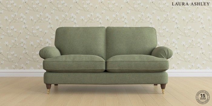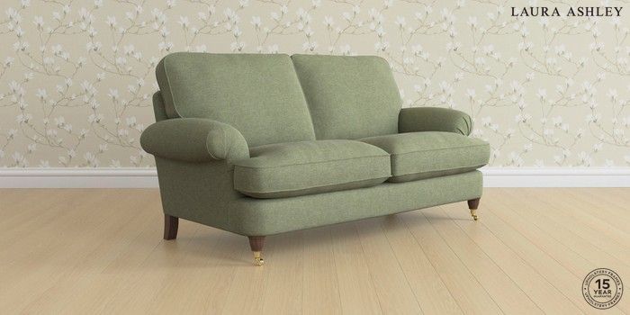 6.12.13 Buy Beaumaris by Laura Ashley 3 Seater Small Sofa Harley Moss Green Low Brass Castor - Chestnut from the Laura Ashley online shop Click here to use our website with more accessibility support, for example screen readers