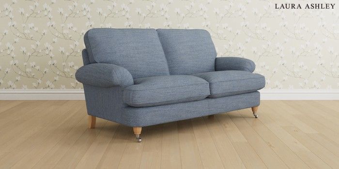 6.12.1 Buy Beaumaris by Laura Ashley 3 Seater Small Sofa Harley Seaspray Blue Low Chrome Castor - Light Oak from the Laura Ashley online shop Click here to use our website with more accessibility support, for example screen readers
