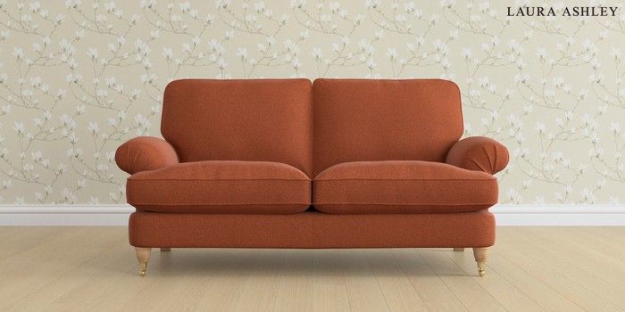 6.12.13 Buy Beaumaris by Laura Ashley 3 Seater Small Sofa Harley Terracotta Orange Low Brass Castor - Light Oak from the Laura Ashley online shop Click here to use our website with more accessibility support, for example screen readers