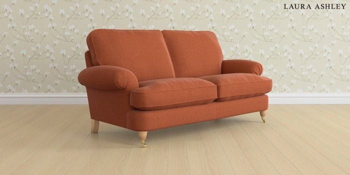 6.12.1 Buy Beaumaris by Laura Ashley 3 Seater Small Sofa Harley Terracotta Orange Low Brass Castor - Light Oak from the Laura Ashley online shop Click here to use our website with more accessibility support, for example screen readers