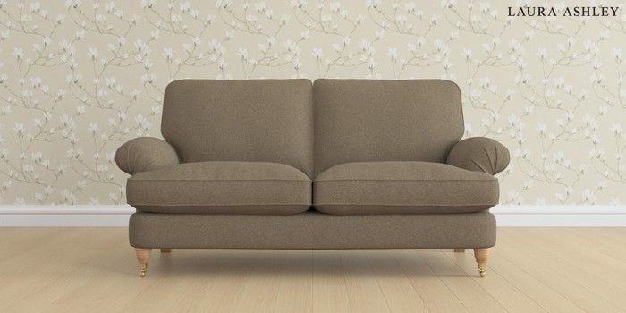 6.12.1 Buy Beaumaris by Laura Ashley 3 Seater Small Sofa Harley Truffle Natural Low Brass Castor - Light Oak from the Laura Ashley online shop Click here to use our website with more accessibility support, for example screen readers