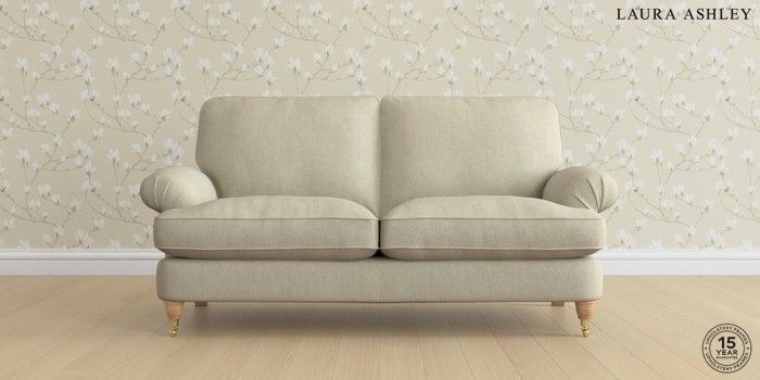 6.12.1 Buy Beaumaris by Laura Ashley 3 Seater Small Sofa Kinsham Natural Low Brass Castor - Light Oak from the Laura Ashley online shop Click here to use our website with more accessibility support, for example screen readers