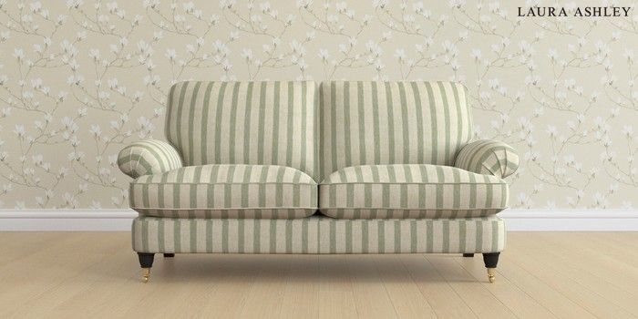 6.12.13 Buy Beaumaris by Laura Ashley 3 Seater Small Sofa Kinsham Stripe Hedgerow Green Low Brass Castor - Black from the Laura Ashley online shop Click here to use our website with more accessibility support, for example screen readers