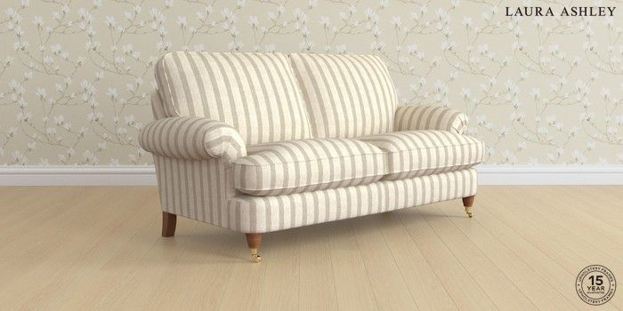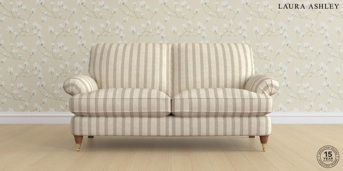 6.12.1 Buy Beaumaris by Laura Ashley 3 Seater Small Sofa Kinsham Stripe Natural Low Brass Castor - Teak from the Laura Ashley online shop Click here to use our website with more accessibility support, for example screen readers