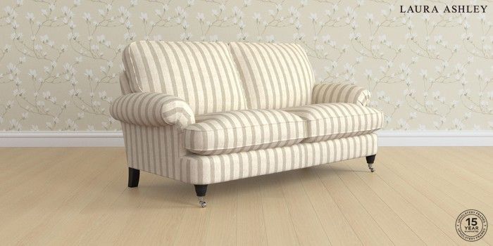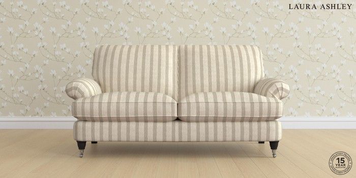 6.12.1 Buy Beaumaris by Laura Ashley 3 Seater Small Sofa Kinsham Stripe Natural Low Chrome Castor - Black from the Laura Ashley online shop Click here to use our website with more accessibility support, for example screen readers