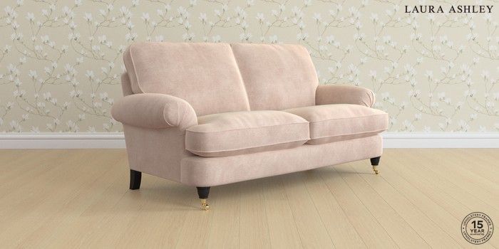 6.12.1 Buy Beaumaris by Laura Ashley 3 Seater Small Sofa Orla Chalk Pink Low Brass Castor - Black from the Laura Ashley online shop Click here to use our website with more accessibility support, for example screen readers