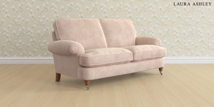 6.12.13 Buy Beaumaris by Laura Ashley 3 Seater Small Sofa Orla Chalk Pink Low Chrome Castor - Teak from the Laura Ashley online shop Click here to use our website with more accessibility support, for example screen readers
