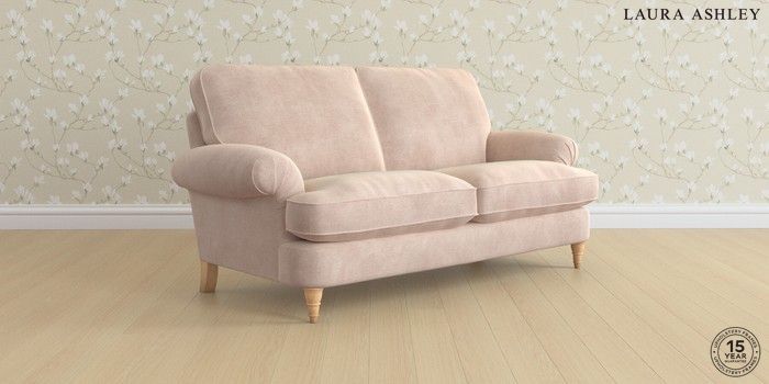 6.12.1 Buy Beaumaris by Laura Ashley 3 Seater Small Sofa Orla Chalk Pink Low Turned - Light Oak from the Laura Ashley online shop Click here to use our website with more accessibility support, for example screen readers