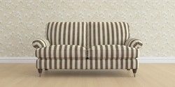 7.0.3 Buy Beaumaris by Laura Ashley 3 Seater Small Sofa Orla Stripe Dark Truffle Natural Low Chrome Castor - Chestnut from the Laura Ashley online shop Click here to use our website with more accessibility support, for example screen readers