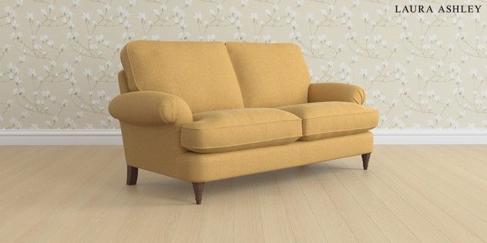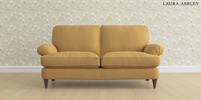 6.12.1 Buy Beaumaris by Laura Ashley 3 Seater Small Sofa Peyton Ochre Yellow Low Turned - Chestnut from the Laura Ashley online shop Click here to use our website with more accessibility support, for example screen readers