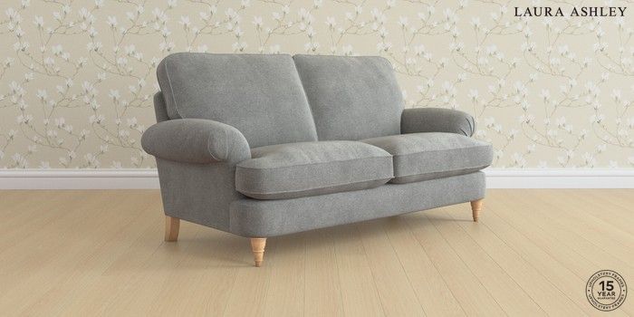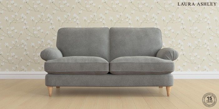 6.12.1 Buy Beaumaris by Laura Ashley 3 Seater Small Sofa Wooton Dark Steel Grey Low Turned - Light Oak from the Laura Ashley online shop Click here to use our website with more accessibility support, for example screen readers