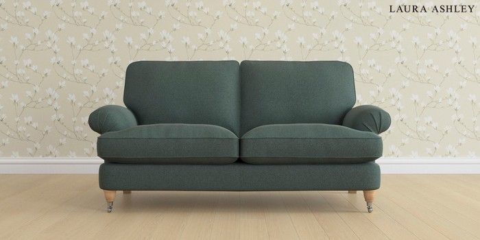 6.12.1 Buy Beaumaris by Laura Ashley 3 Seater Small Sofa Wooton Forest Green Low Chrome Castor - Light Oak from the Laura Ashley online shop Click here to use our website with more accessibility support, for example screen readers