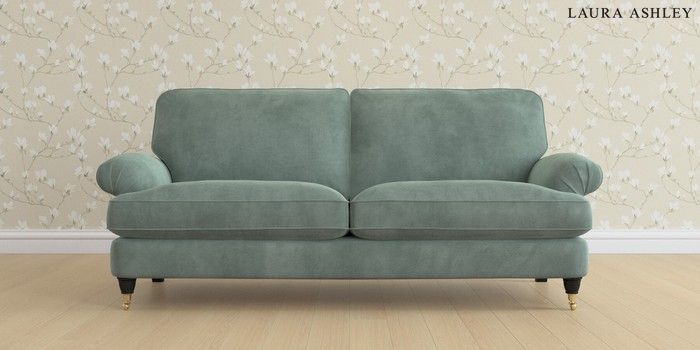 6.12.1 Buy Beaumaris by Laura Ashley 3 Seater Sofa Ailsworth Fern Green Low Brass Castor - Black from the Laura Ashley online shop Click here to use our website with more accessibility support, for example screen readers