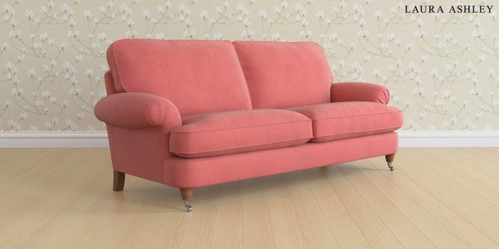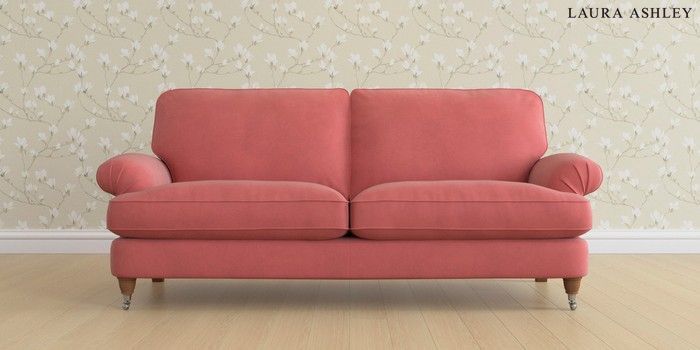6.12.1 Buy Beaumaris by Laura Ashley 3 Seater Sofa Ailsworth Old Rose Pink Low Chrome Castor - Teak from the Laura Ashley online shop Click here to use our website with more accessibility support, for example screen readers