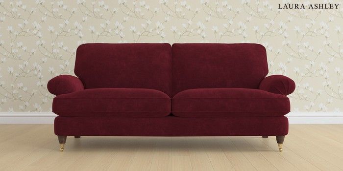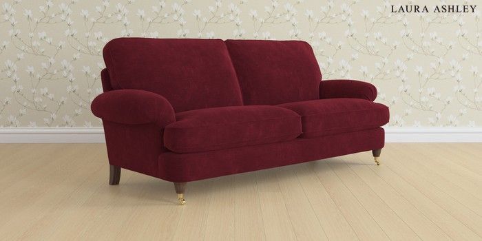 6.12.13 Buy Beaumaris by Laura Ashley 3 Seater Sofa Alwyn Velvet Burgundy Red Low Brass Castor - Chestnut from the Laura Ashley online shop Click here to use our website with more accessibility support, for example screen readers