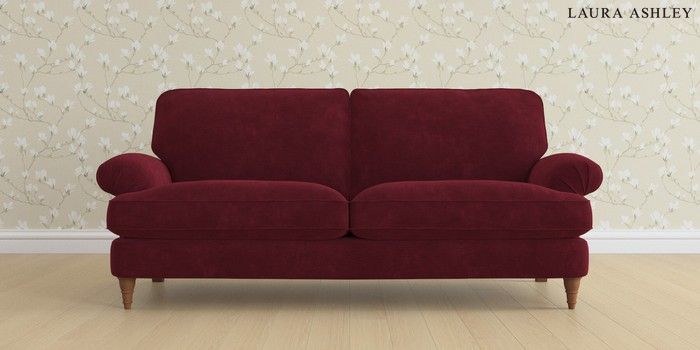 6.12.1 Buy Beaumaris by Laura Ashley 3 Seater Sofa Alwyn Velvet Burgundy Red Low Turned - Teak from the Laura Ashley online shop Click here to use our website with more accessibility support, for example screen readers