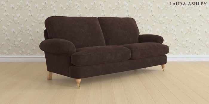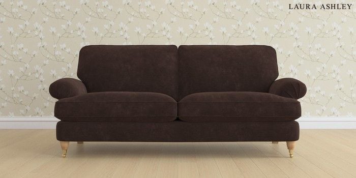 6.12.13 Buy Beaumaris by Laura Ashley 3 Seater Sofa Alwyn Velvet Chocolate Brown Low Brass Castor - Light Oak from the Laura Ashley online shop Click here to use our website with more accessibility support, for example screen readers