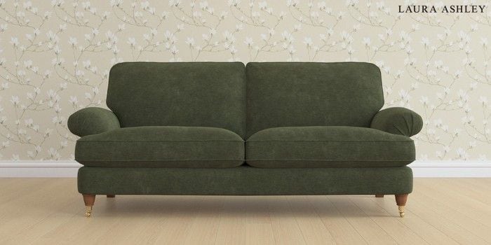 6.12.1 Buy Beaumaris by Laura Ashley 3 Seater Sofa Alwyn Velvet Ivy Green Low Brass Castor - Teak from the Laura Ashley online shop Click here to use our website with more accessibility support, for example screen readers