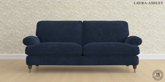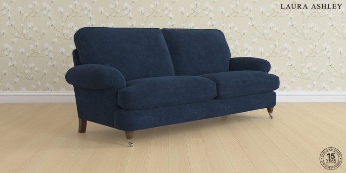 6.12.1 Buy Beaumaris by Laura Ashley 3 Seater Sofa Alwyn Velvet Midnight Navy Low Chrome Castor - Chestnut from the Laura Ashley online shop Click here to use our website with more accessibility support, for example screen readers