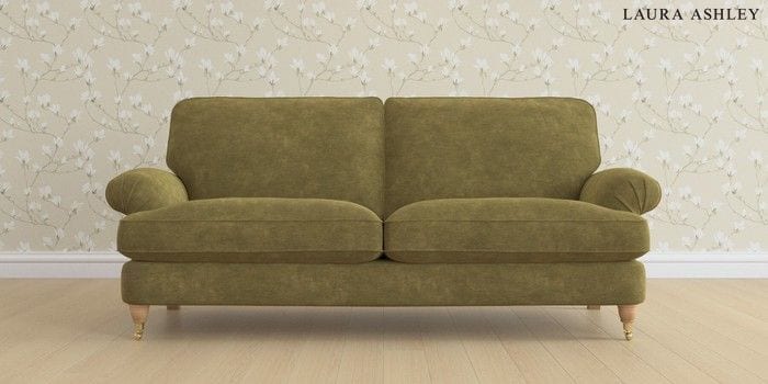 6.12.13 Buy Beaumaris by Laura Ashley 3 Seater Sofa Alwyn Velvet Olive Green Low Brass Castor - Light Oak from the Laura Ashley online shop Click here to use our website with more accessibility support, for example screen readers