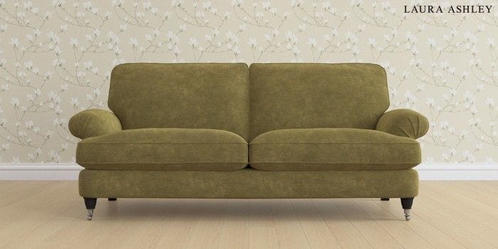 6.12.1 Buy Beaumaris by Laura Ashley 3 Seater Sofa Alwyn Velvet Olive Green Low Chrome Castor - Black from the Laura Ashley online shop Click here to use our website with more accessibility support, for example screen readers