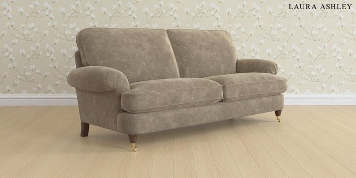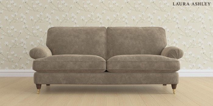 6.12.13 Buy Beaumaris by Laura Ashley 3 Seater Sofa Alwyn Velvet Truffle Natural Low Brass Castor - Chestnut from the Laura Ashley online shop Click here to use our website with more accessibility support, for example screen readers