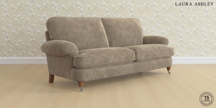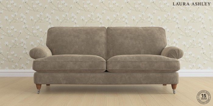 6.12.1 Buy Beaumaris by Laura Ashley 3 Seater Sofa Alwyn Velvet Truffle Natural Low Chrome Castor - Teak from the Laura Ashley online shop Click here to use our website with more accessibility support, for example screen readers