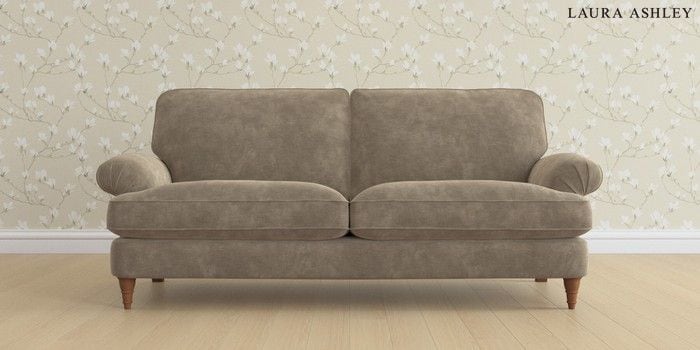 6.12.1 Buy Beaumaris by Laura Ashley 3 Seater Sofa Alwyn Velvet Truffle Natural Low Turned - Teak from the Laura Ashley online shop Click here to use our website with more accessibility support, for example screen readers
