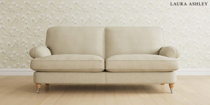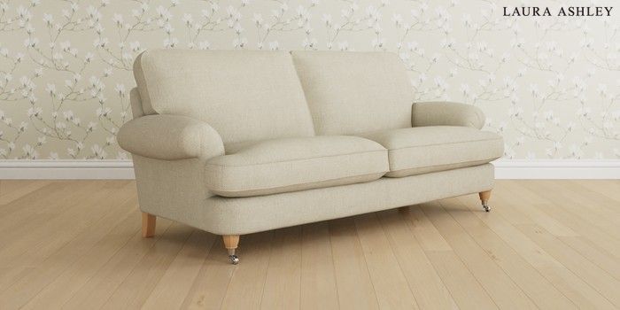 6.12.1 Buy Beaumaris by Laura Ashley 3 Seater Sofa Anneliese Natural Low Chrome Castor - Light Oak from the Laura Ashley online shop Click here to use our website with more accessibility support, for example screen readers
