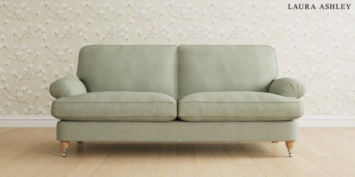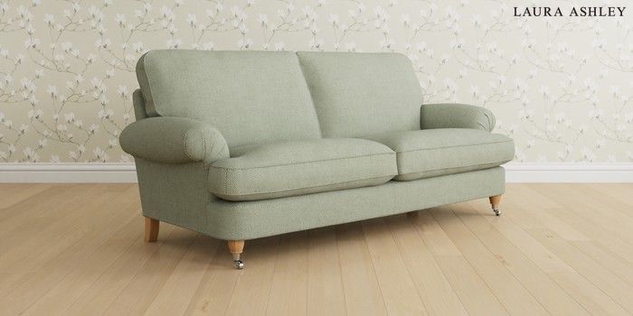 6.12.1 Buy Beaumaris by Laura Ashley 3 Seater Sofa Anneliese Sage Green Low Chrome Castor - Light Oak from the Laura Ashley online shop Click here to use our website with more accessibility support, for example screen readers