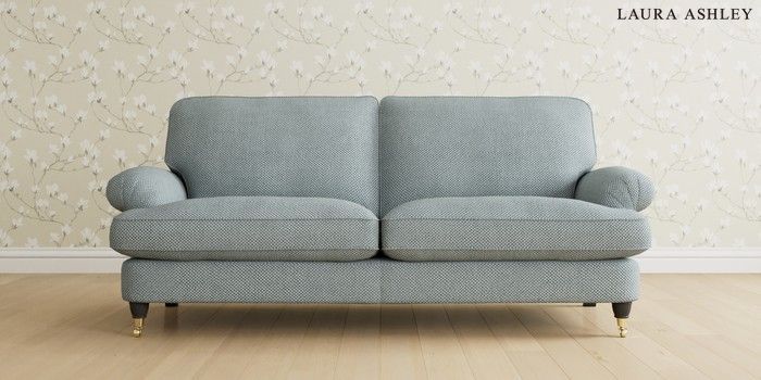 6.12.13 Buy Beaumaris by Laura Ashley 3 Seater Sofa Anneliese Seaspray Blue Low Brass Castor - Black from the Laura Ashley online shop Click here to use our website with more accessibility support, for example screen readers